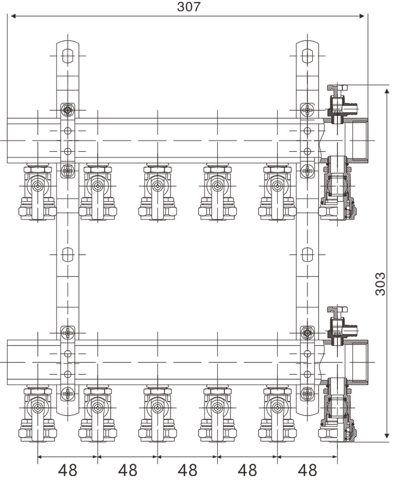 分水器常用于:地板采暖系統中的,分集水器管理若干的